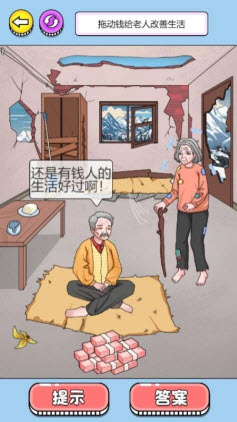 4、部分关卡设有特定剧情目标,例如需合理分配资金为老人改善生活,需结合场景需求完成金钱拖拽操作。