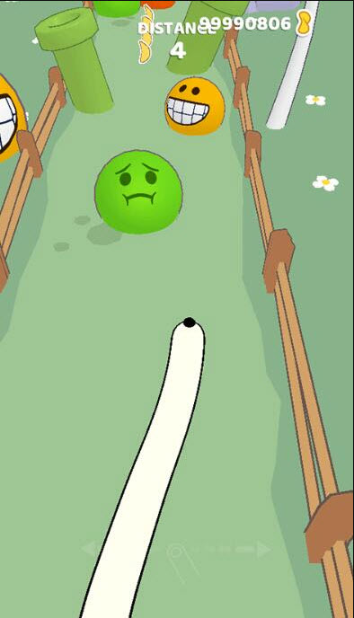 3. 游戏过程中,通过左右滑动屏幕即可控制鼻子的移动方向,核心目标是躲避赛道上的各类障碍物,同时尽可能收集更多食物道具;