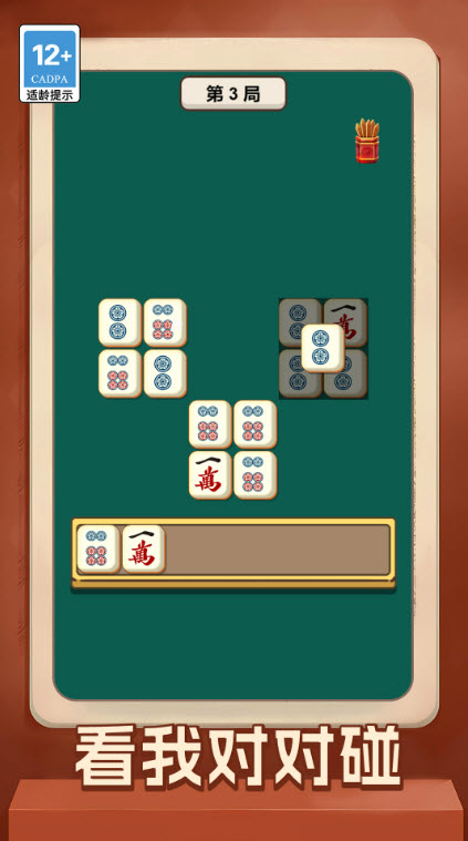 4. 点击选中目标麻将牌,将其移入屏幕底部的三个收集栏位中,当同一栏位集齐三张相同牌型时,将自动触发消除效果,消除后的牌型将从栏位中移除。