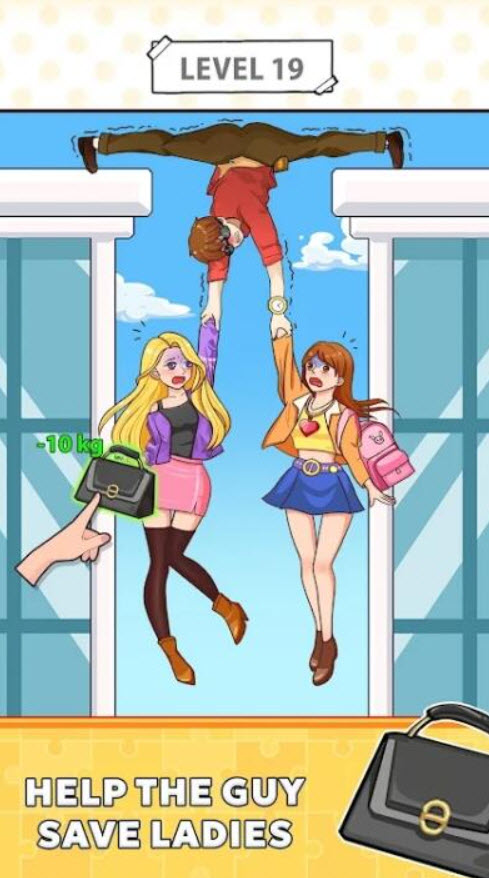 3、第二关的任务是帮助情人成功逃走,仔细寻找关卡周边的可用道具,借助道具让情人实现下滑逃生即可过关。
