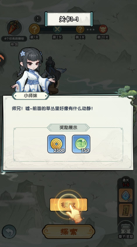 4、领取探索的奖励。5、点击挑战进入关卡击败怪物。