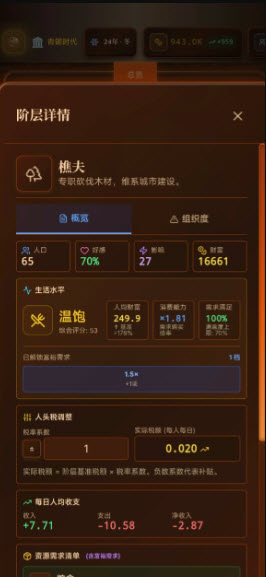 - 多元阶层模拟:不同职业群体的生存需求和政策敏感度都是独立计算的,比如学者需要补贴、商人怕高税,阶层平衡是执政关键