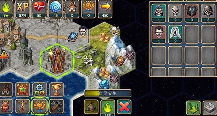4. 当地块显示魔物标识时,需先击败魔物才能获取该区域资源,点击界面下方“剑”形攻击按钮即可发起战斗,建议根据魔物属性选择合适技能释放,提升战斗效率。