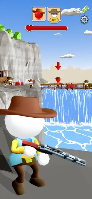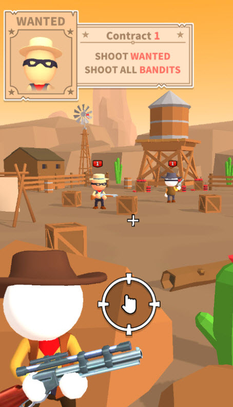1、下载并进入西部狙击手狂野西部,滑动屏幕搜寻藏在暗处的敌人。