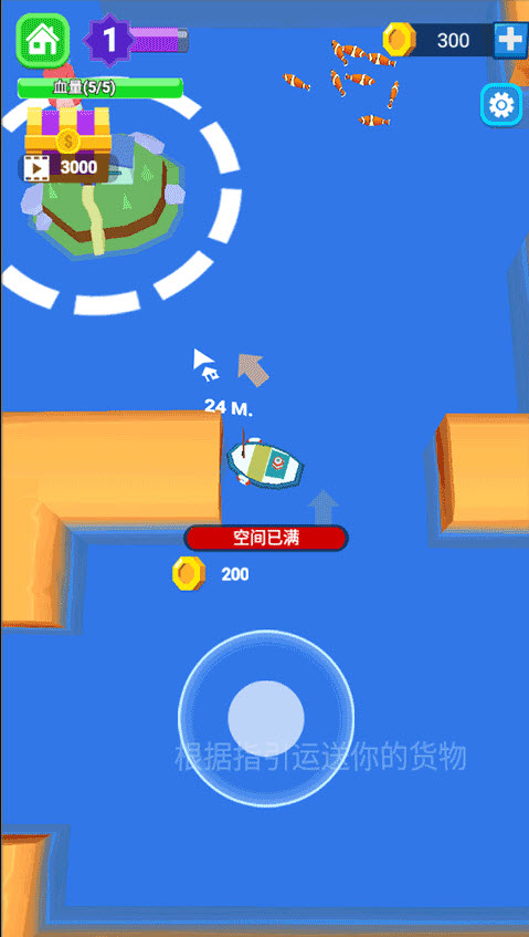 3、跟着游戏指引操作,将捕捞到的渔货运送到指定地点。