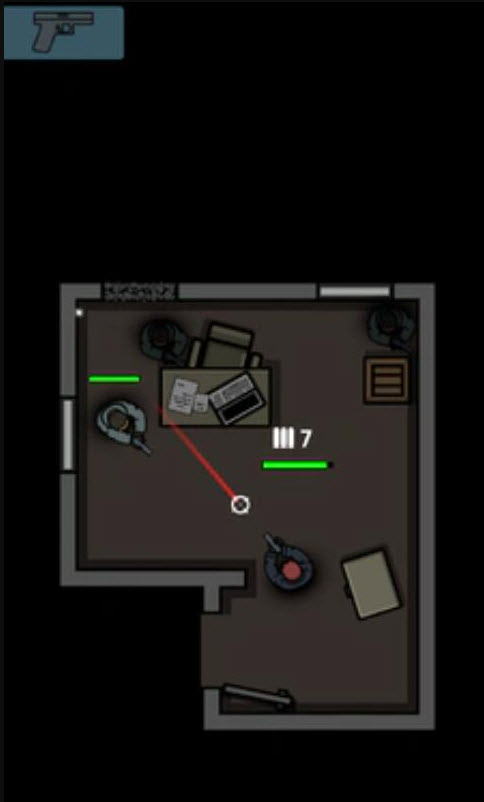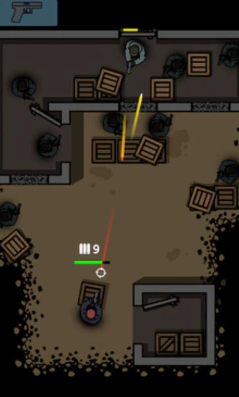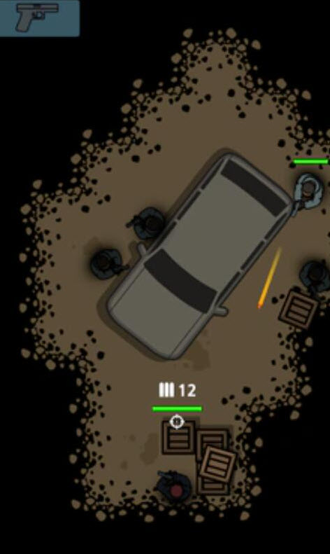 3、进入关卡后按住屏幕可以让角色探身出来射击,滑动屏幕可以选择不同的攻击方向。