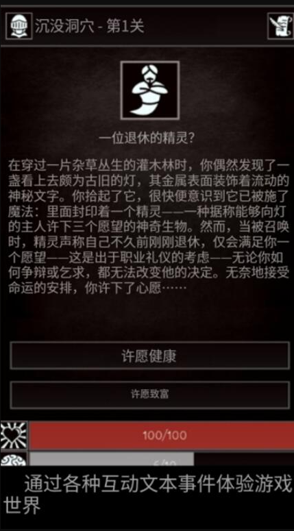 纯文字RPG冒险,操作简单,侧重策略与探索