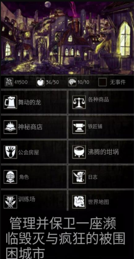2. 可将城市作为专属堡垒,升级俱乐部获取被动收益,在铁匠铺强化武器,在议会大厅任职,在酒吧打探情报,多维度提升自身实力;