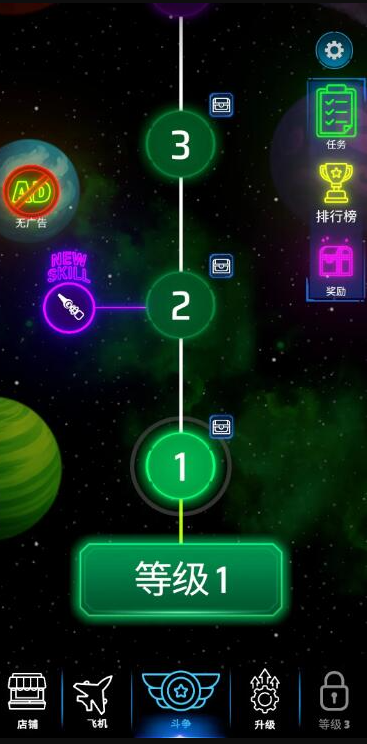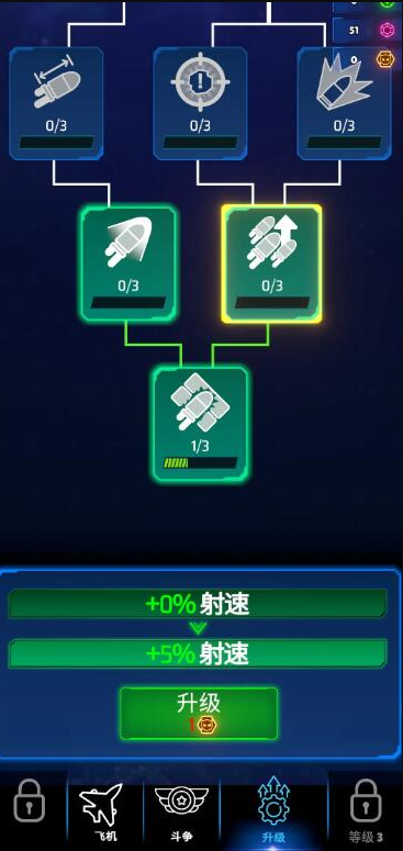 6、在主界面点击飞机可以消耗绿币来升级飞机的属性,提升等级后飞机的外形也会改变。