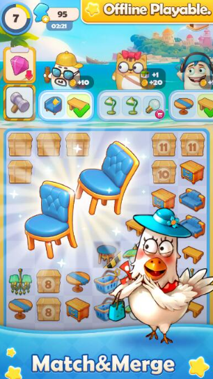3、另外,游戏里获取金币的方式很简单,将两个相同的物件合成,就能得到更高一阶的物品,还能解锁额外奖励;