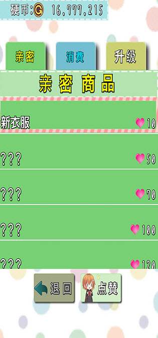 2、轻松简单的点击式互动玩法,每天花点时间陪伴猫娘,慢慢提升彼此亲密度。