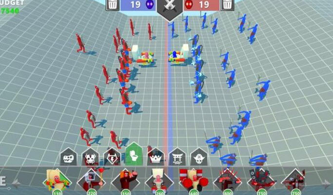 游戏采用开放式战场设计,给予玩家极高的操作自由度,玩家可根据自身战术需求,自由部署己方与敌方的各类兵种单位(含步兵、骑兵、弓箭手等经典兵种),所有部署的单位都将严格遵循物理引擎规则,自动展开公平且激烈的战斗。其核心魅力在于高度自由的沙盒体验与不可预测的物理反馈——单位间的碰撞力度、攻击冲击效果及地形交互反应,均会实时改变战局走向,无固定剧情束缚。无需复杂的操作技巧,只需简单部署兵种阵容,即可沉浸式观看一场充满变量、混乱感与趣味性的模拟战争。