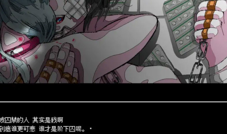 2、Ture end:选择「你是个纯粹的变态是坏人」→ 选择「乖乖听少年A的话吃下药」,触发真结局「少年A的异常爱情」。