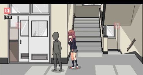 3、待姬川同学起身後,向左移动,找到【门的标识】并点击,走出教室;
