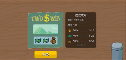 4、当金币累计至10枚时,即可购买刮刮卡,刮开后若出现两个相同图案,可获得对应数值的金币奖励,积累更多资本;