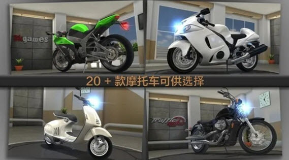 3. 收录数十款风格各异的炫酷摩托车,每款车型均有独特外观与性能设定,华丽赛车与沿途优美风景相互映衬,呈现专属视觉盛宴。