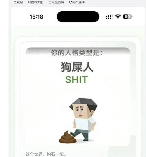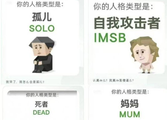 2、不同于传统MBTI测试固定的十六种人格分型与专业表述,本游戏完整沿用其经过验证的科学测试逻辑与多维度划分标准,核心创新点在于将最终测试结果,替换为极具话题性与社交传播性的自嘲式黑色幽默标签。这种人性化设计既牢牢保留了人格测试的核心参考价值,能够精准映射用户的真实性格特质与行为倾向,又极大提升了产品的娱乐性与社交传播属性,让人格测试不再是单纯的自我认知工具,更成为当代年轻人宣泄情绪、表达自我态度的重要载体,完美适配年轻群体的社交分享与互动需求。