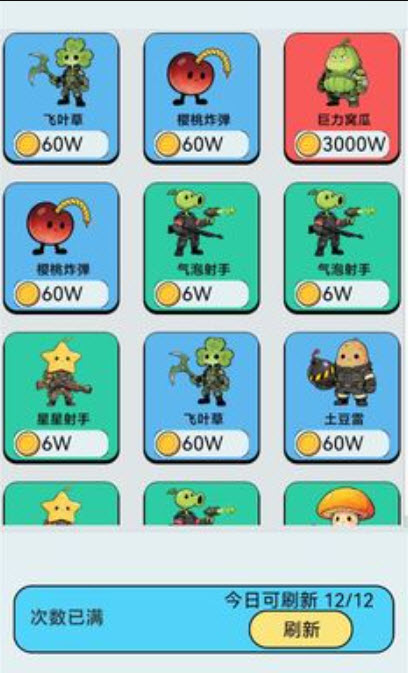 3、通过刷新功能筛选心仪的植物角色,将其加入战斗队伍,完成战前阵容组建。